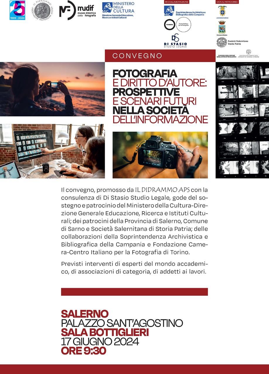 Presso la Sala Bottiglieri di Palazzo Sant’Agostino a Salerno si è svolto il convegno “Fotografia e diritto d’autore: prospettive e scenari futuri nella società dell’informazione”, promosso dall’Associazione IL DIDRAMMO APS con il supporto del Museo Didattico della Fotografia (MuDiF).